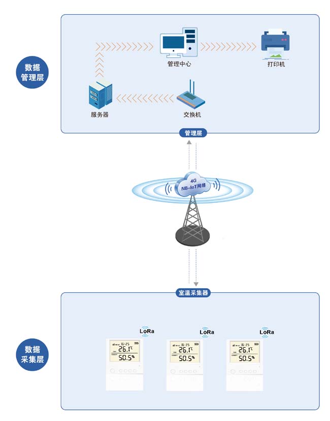 室温监测系统,是通过室温监测设备实时采集热户室内温湿度并通过NB-IoT物联网将数据推送到热力公司数据中心,实现室温的远程监测,为热力公司平衡调节、控制能耗提供数据支撑,指导按需供热调节,促进节能减排在以往的供热系统中,缺少有效、方便的温度监测系统,供热公司很难及时了解热用户的室温情况,无法及时根据室温的变化进行管网调节,常会使供热效果不平衡,能耗明显升高;因此,采用无线用户室温监测系统对热用户室内温度进行监测是十分必要和有效的。