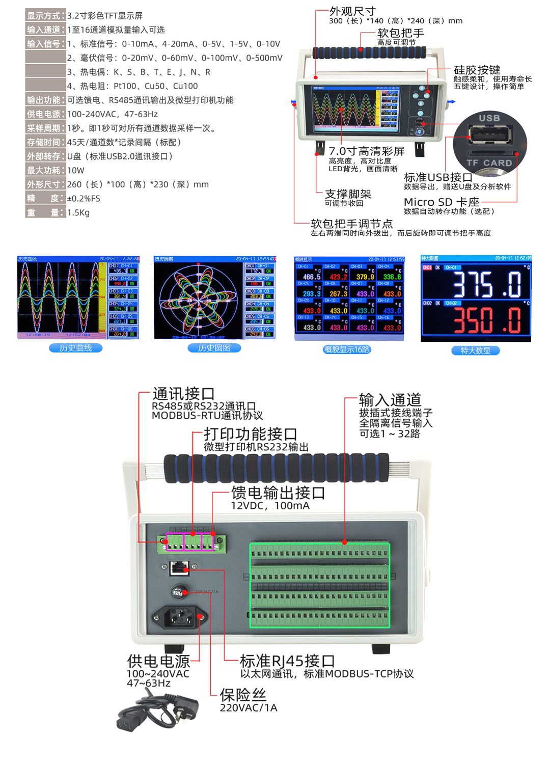 台式数据采集记录仪TF200液晶天然气流量积算控制仪/记录仪对现场温度、压力、流量等各种信号进行采集、显示、控制、远传、通讯、打印等处理。