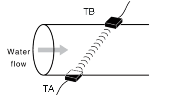 设声波从发射器传播到接收器所需的时间,即在介质的流动方向上为 T A –B,以及它从接收换能器移动到发射换能器所需的时间,即逆流向 T B –A。