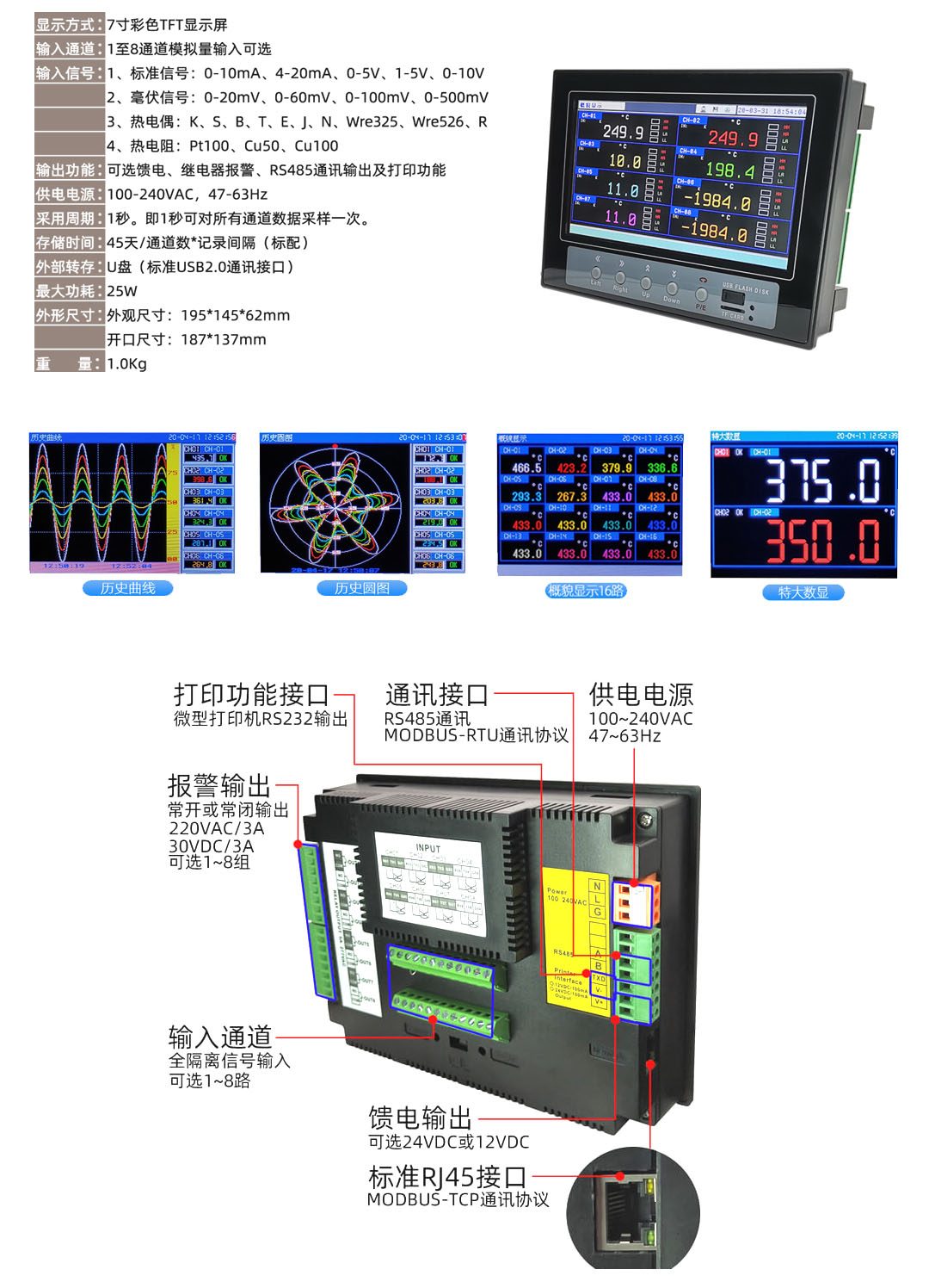 触摸屏的外插CF卡来保存数据;标配1G的电子硬盘。可扩展CF卡1~4G存储记录空间;数据可通过微型打印机打印数据报表、曲线;或通过CF卡存储数据用读卡器在PC上复制数据包到PC机用图形软件打开数据;也可用串行COM2口备份Excel电子表格数据至上位计算机。CF卡内:【AL】数据包是报警报表;【DL】数据包是数据报表;按年/月/日/小时来保存数据源文件。保存数据的数据是加密的必须采用专用的宇电PC图形软件来阅读。