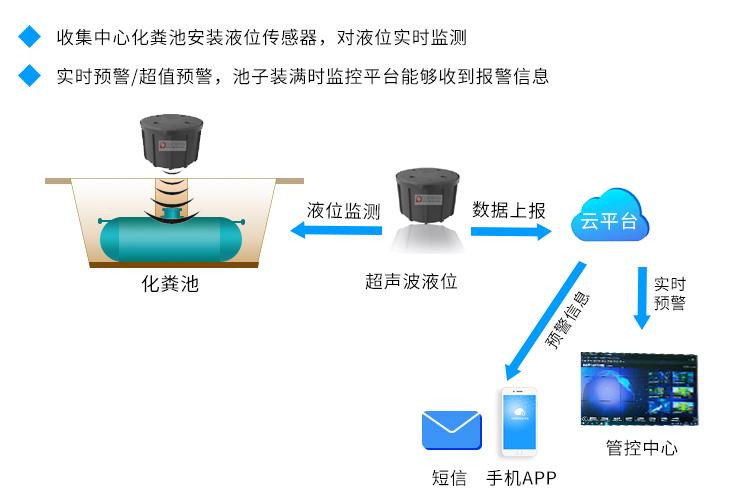 化粪池造成安全隐患是没有及时掌握信息,而利用物联网化粪池监测系统终端将采集的温度、液位、气体浓度等业务数据通过NB-IoT网络上传,做到实时高效。