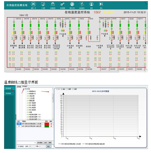 测温监控系统主要包括主监控中心界面、参数设置、温度数据查询、告警以及温度值实时曲线和历史曲线。主要功能如下: