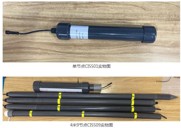 设备全部实现数字化传感、采集、嵌入式处理、无线传输。核心含水率传感器基于频率介电反射 (FDR) 测量原理,根据发出的电磁波在不同介电系数物质中的频率变化,测得各土层的含水率;利用内置高精度数字温度传感器,测量各土层温度;利用高精度重力场加速度计测量地下各节点倾角及位移的变化。
