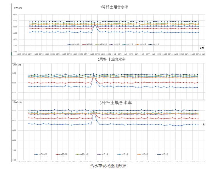 其中,探头组1包含1-3号探头,分别测量0.5m、1m和1.5m处深度的土壤温湿度;