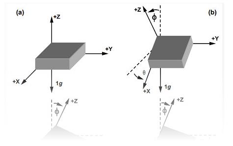 双轴加速传感器可以保证 XY 平面上的倾斜角检测。但是在实际应用中,很难保证倾斜只发生在 XY 平面。