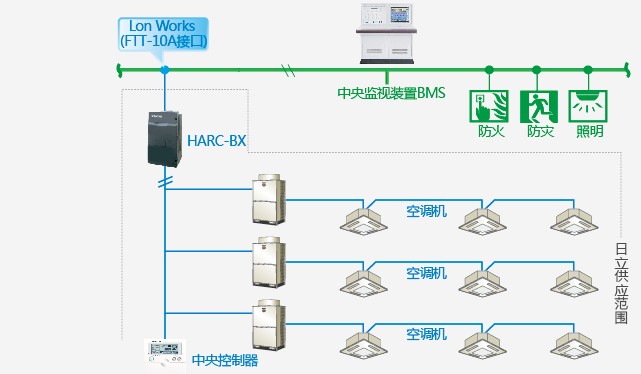 可以适用Lonworks、BACnet、RS-485等多种网络通信协议,通过HARC-BX、HC-A64BNP或HLRSCON将德明电子空调设备接入楼宇自控或智能家居系统,HARC-BX、HC-A64BNP和HLRSCON都可以连接64台室内机。
