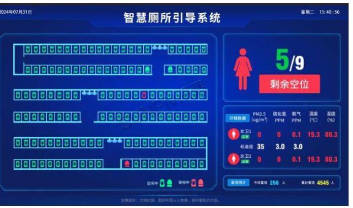 提供厕位占用状态显示、智能导航、预约服务等功能,提升用户便利性。