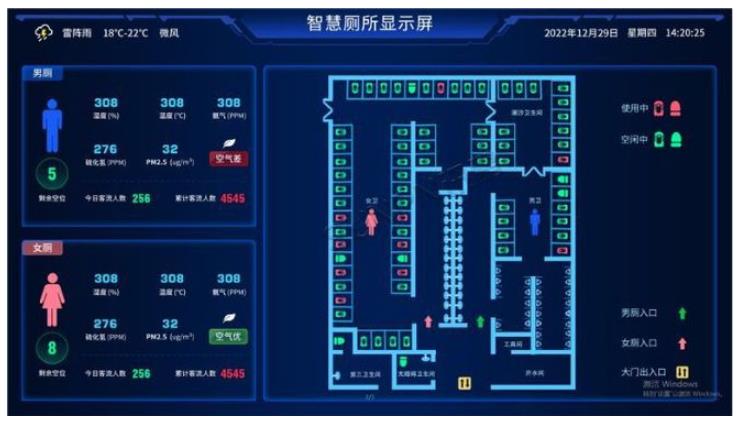 实时监测公厕环境参数(空气质量、温湿度等)和设施状态(厕位占用、水龙头使用等)。